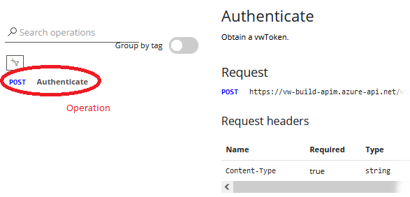 - You may be given a choice of operations for some APIs, but Authenticate has only a POST