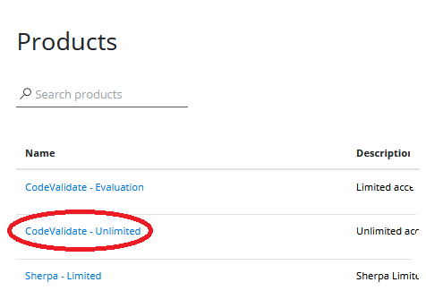 - Choose "Products" on the top menu. This will take you to the products page, which lists the